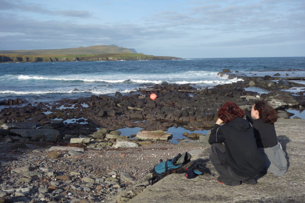 This week, we are going to work on a community poster that highlights the annual seabird report card results for St. George and St. Paul Islands. Chipper and Jillian worked on their renditions of happy and sad egg-faces to indicate the productivity of different seabird species, and then we went on a field trip to find some actual seabirds. We got distracted watching seal pups play in a shallow protected pool and rock sandpipers at the edge of the surf, but we enjoyed the red-legged kittiwakes on the cliffs and even spotted a couple of sheltering horned puffins.