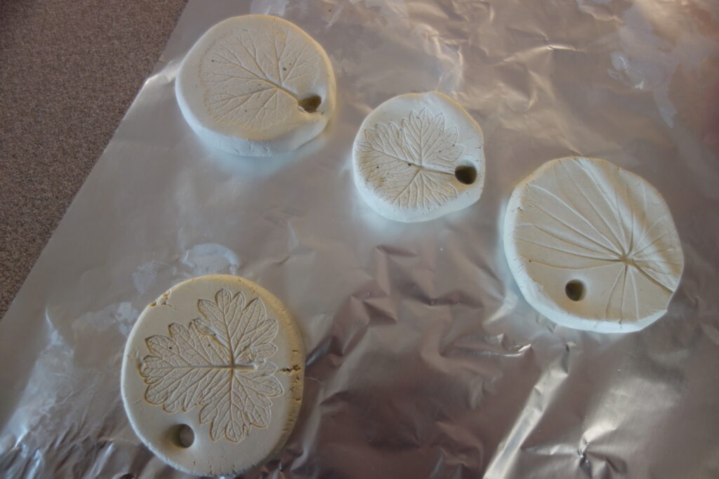 After learning about producers (organisms that create their own food), we went on a quest to find different plants (plants use energy from the sun to make food). We collected leaves and seed heads of all sorts of different shapes and sizes, and pressed them to made clay leaf ornaments. Emma and I did a similar activity after school, and the leaf designs came out beautifully.