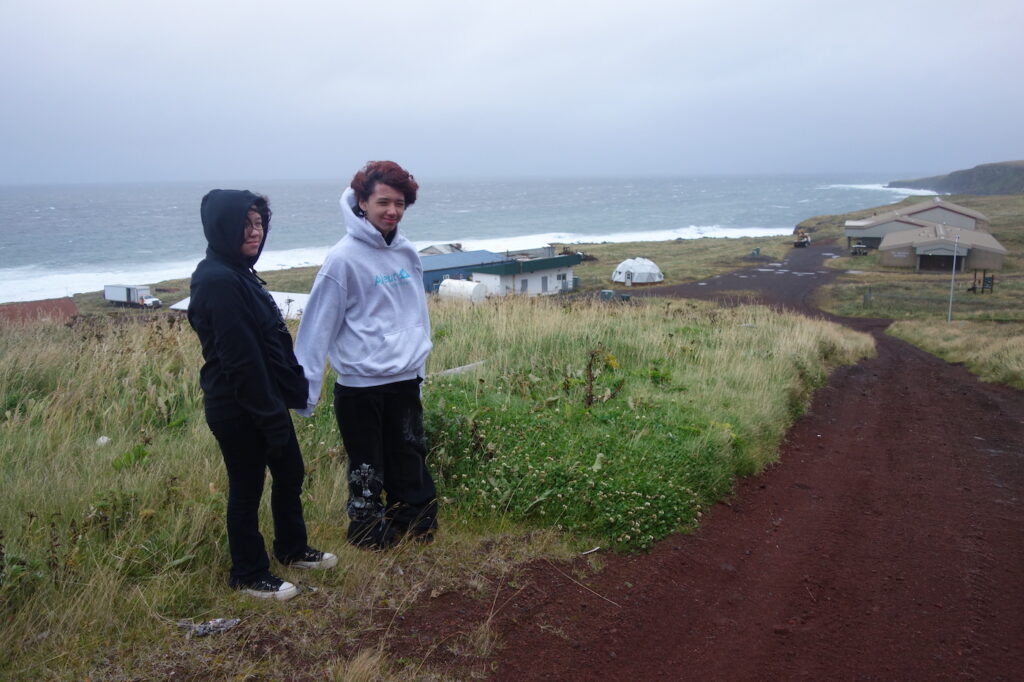 There is one thick-billed murre with a chick left on the cliffs below the village, and we’re expecting it to fledge any day.  We braved the wind to go and check on it.  It was too windy to hold the scope still, and we could only see the adult clearly.  But, we expect the chick was still there and huddling closer to the cliff for safety.